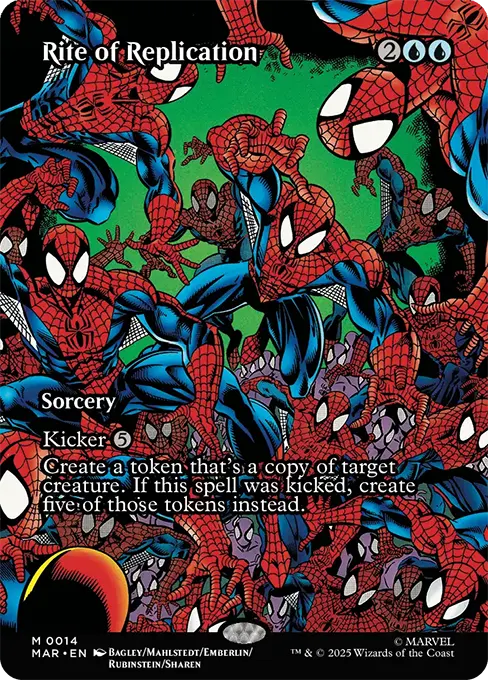 派出一個衍生物,此衍生物為目標生物之複製品。如果此咒語已增幅,則改為派出五個此類衍生物。