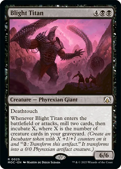 每當此生物進場或攻擊時,磨兩張牌,然後撫育X,X為你墳墓場中的生物牌數量。(派出一個上面有X個+1/+1指示物的撫育器衍生物,且具有「{2}:轉化此衍生物。」它轉化為0/0非瑞人神器生物。)