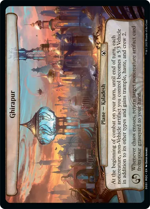 時空 – 阿維什卡在你回合的戰鬥開始時,直到回合結束,每個由你操控且既非生物也非載具的神器均成為5/3載具,且仍具有原本類別,並獲得踐踏、敏捷與搭載2。每當引發混沌時,將目標非生物神器牌從你的墳墓場移回你手上。