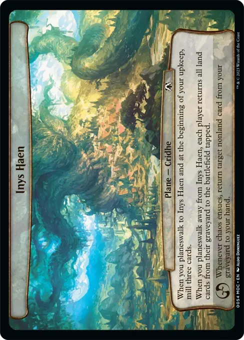 時空 – 克萊哲當你時空換入河岸海恩和在你的維持開始時,磨三張牌。當你時空換出河岸海恩時,每位玩家各將所有地牌從其墳墓場橫置移回戰場。每當引發混沌時,將目標非地牌從你的墳墓場移回你手上。
