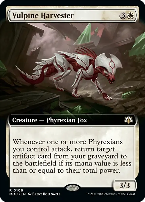 每當由你操控的一個或數個非瑞人攻擊時,選擇在你墳墓場中的目標神器牌。如果該牌之魔法力值等於或小於前述各生物的力量總和,則將它從該處移回戰場。