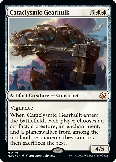當此生物進場時,每位玩家各從由其操控的非地永久物中選擇一個神器、一個生物、一個結界和一個鵬洛客,然後犧牲其餘的非地永久物。