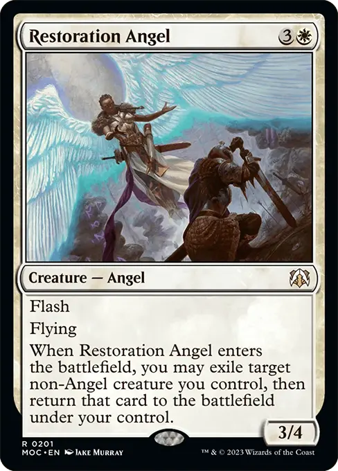 當此生物進場時,你可以放逐目標由你操控的非天使生物,然後將該牌在你的操控下移回戰場。