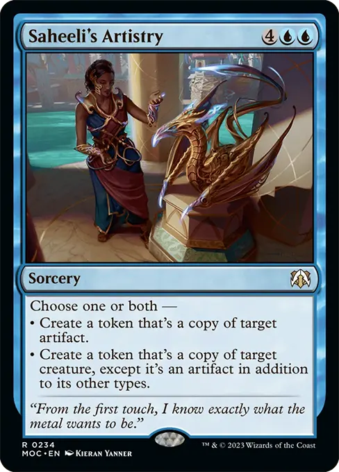 •派出一個衍生物,此衍生物為目標生物之複製品,但它額外具有神器此類別。