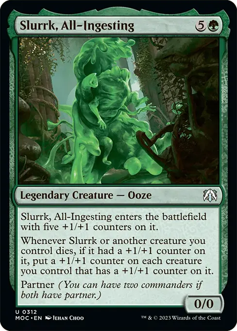 每當斯拉克或另一個由你操控的生物死去時,若其上有+1/+1指示物,則在每個由你操控且其上有+1/+1指示物的生物上各放置一個+1/+1指示物。