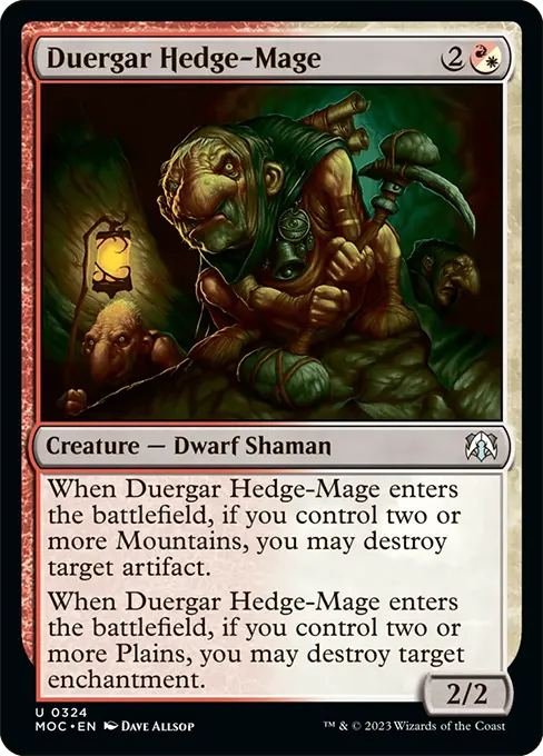 當此生物進場時,若你操控兩個或更多山脈,則你可以消滅目標神器。
