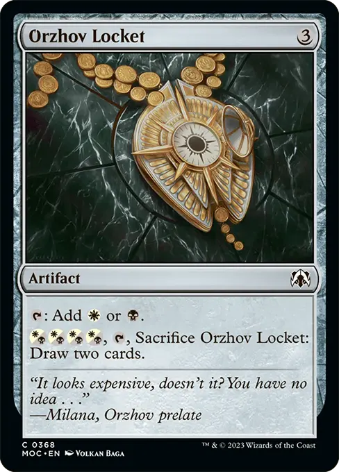 {W/B}{W/B}{W/B}{W/B},{T},犧牲此神器:抽兩張牌。
