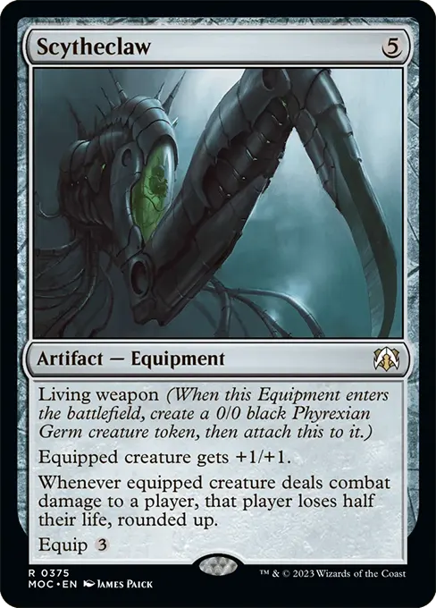 每當佩帶此武具的生物對任一玩家造成戰鬥傷害時,該玩家失去一半生命,小數點後進位。