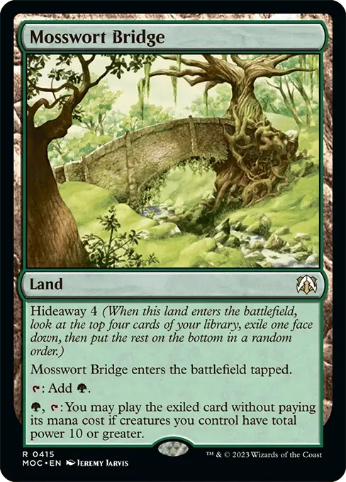 掩蔽4(當此地進場時,檢視你牌庫頂的四張牌,將其中一張牌面朝下地放逐,然後將其餘的牌以隨機順序置於牌庫底。)