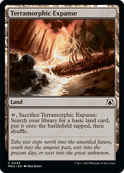 {T},犧牲此地:從你牌庫中搜尋一張基本地牌,將之橫置放進戰場,然後洗牌。