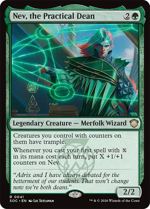 每當你施放每回合中你的第一個魔法力費用包含{X}的咒語時,在涅夫上放置X個+1/+1指示物。