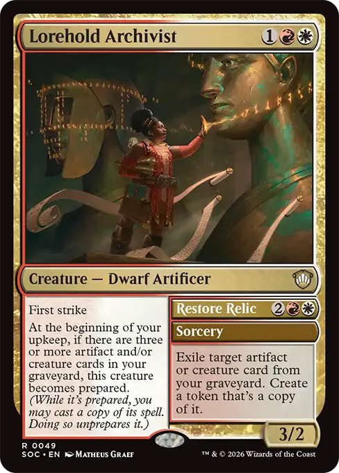 在你的維持開始時,若你墳墓場中有三張或更多的神器和/或生物牌,則此生物成為已備法。(於其已備法期間,你可以施放其上咒語的複製品。施放之後其便撤法。)