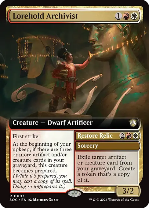 在你的維持開始時,若你墳墓場中有三張或更多的神器和/或生物牌,則此生物成為已備法。(於其已備法期間,你可以施放其上咒語的複製品。施放之後其便撤法。)