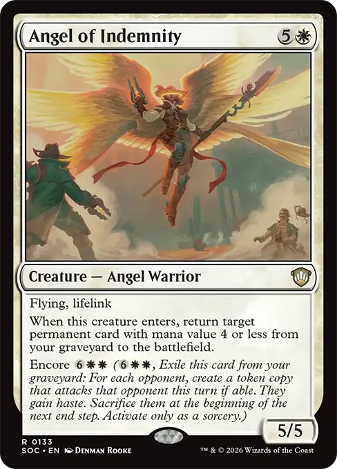 返場{6}{W}{W}({6}{W}{W},從你的墳墓場放逐此牌:為每位對手各進行以下流程~派出一個衍生複製品,且其本回合若能攻擊該對手,便須如此作。它們獲得敏捷異能。在下一個結束步驟開始時,將它們犧牲。只能於巫術時機起動。)