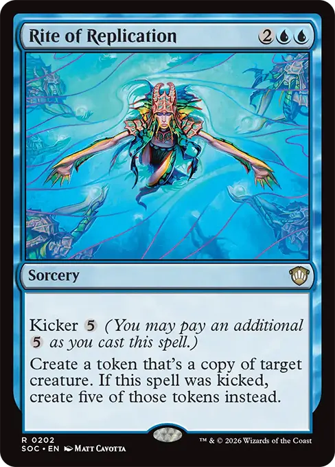 派出一個衍生物,此衍生物為目標生物之複製品。如果此咒語已增幅,則改為派出五個此類衍生物。
