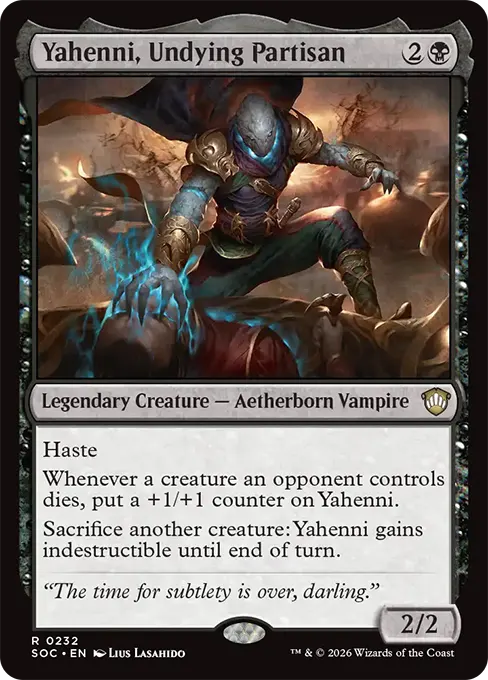 每當一個由對手操控的生物死去時,在耶赫尼上放置一個+1/+1指示物。