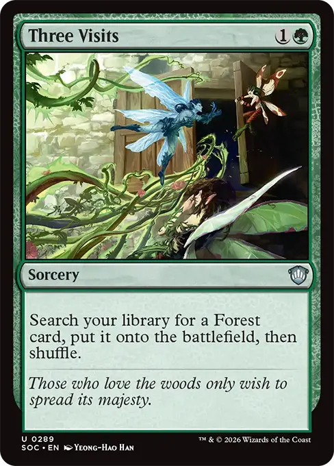 從你牌庫中搜尋一張樹林牌,將之放進戰場,然後洗牌。