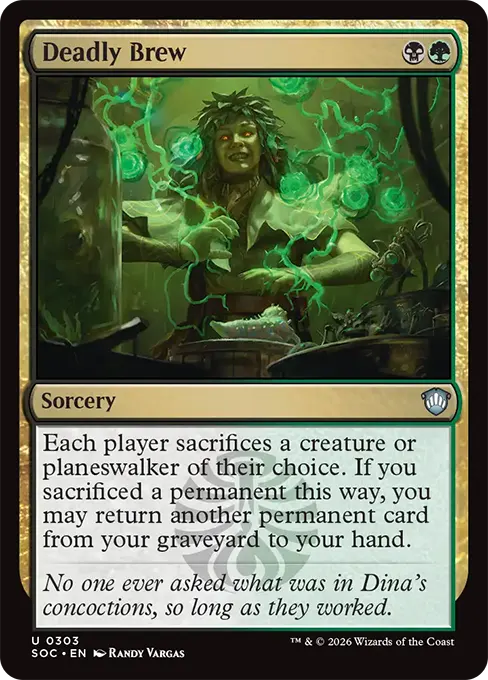 每位玩家各犧牲一個依其選擇的生物或鵬洛客。如果你以此法犧牲一個永久物,則你可以將另一張永久物牌從你的墳墓場移回你手上。
