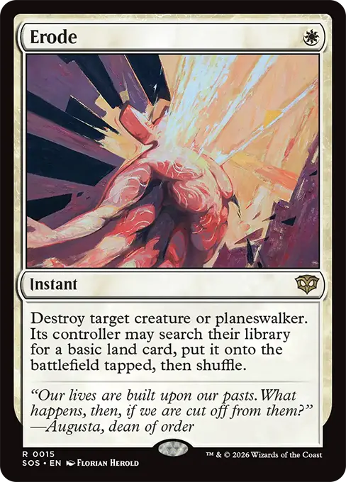 消滅目標生物或鵬洛客。其操控者可以從其牌庫中搜尋一張基本地牌,將之橫置放進戰場,然後洗牌。