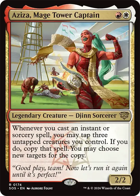 每當你施放瞬間或巫術咒語時,你可以橫置三個由你操控且未橫置的生物。若你如此作,則複製該咒語。你可以為該複製品選擇新的目標。