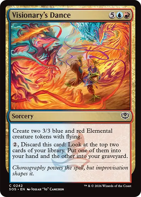 派出兩個3/3,藍紅雙色,具飛行異能的元素衍生生物。