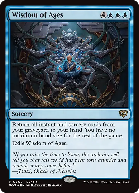 將所有瞬間與巫術牌從你墳墓場移回你手上。在本盤遊戲接下來的時段,你的手牌數量沒有上限。