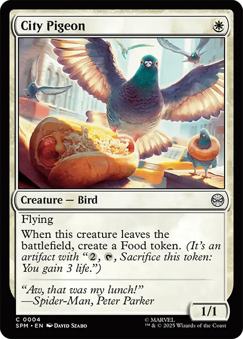 當此生物離開戰場時,派出一個食品衍生物。(它是具「{2},{T},犧牲此衍生物:你獲得3點生命」的神器。)