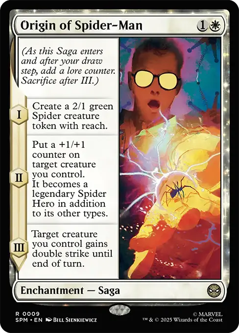 II — 在目標由你操控的生物上放置一個+1/+1指示物。它成為傳奇的蜘蛛/英雄,且仍具有原本類別。