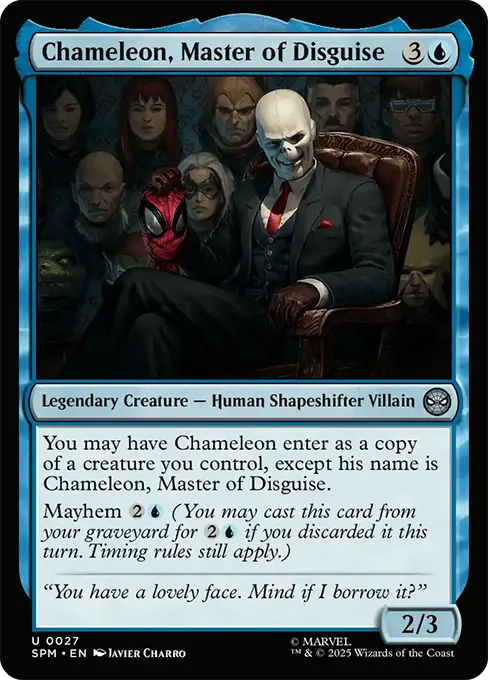 你可以使變色龍當成任一由你操控的生物之複製品來進入戰場,但他的名稱仍是僞裝大師變色龍。