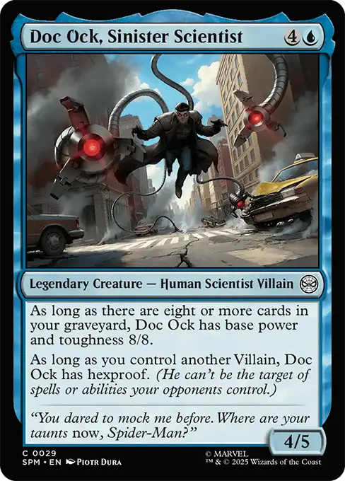 只要你操控另一個反派,八爪博士便具有辟邪異能。(他不能成為由對手操控之咒語或異能的目標。)