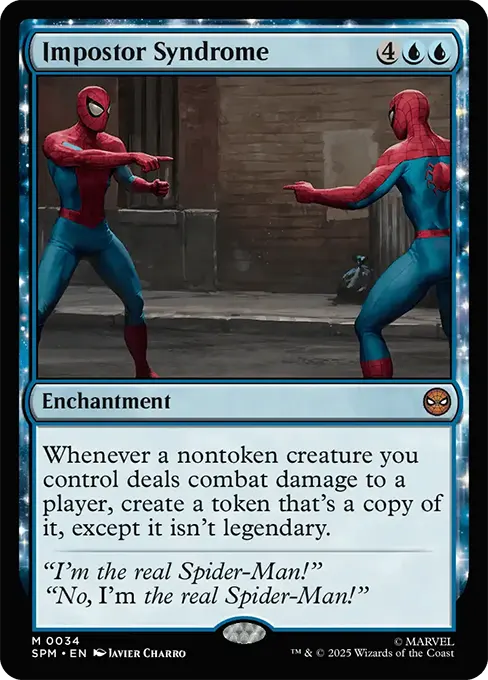 每當一個由你操控且非衍生物的生物對任一玩家造成戰鬥傷害時,派出一個為該生物複製品的衍生物,但該衍生物不是傳奇。