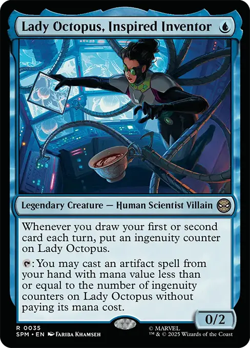 {T}:你可以從你手上施放一個魔法力值等於或小於八爪女士上精妙指示物數量的神器咒語,且不需支付其魔法力費用。