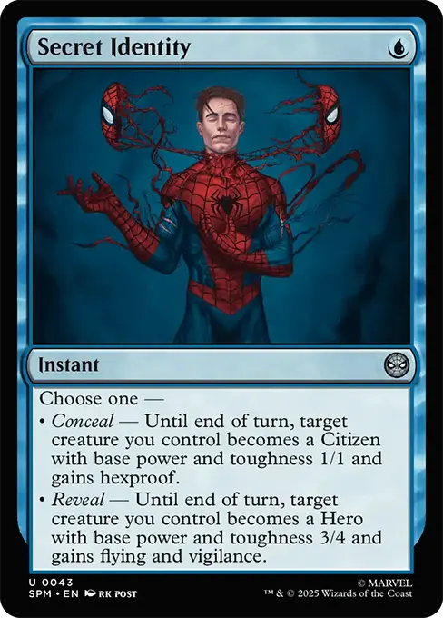 •隱瞞~直到回合結束,目標由你操控的生物成為基礎力量與防禦力為1/1的市民,且獲得辟邪異能。
