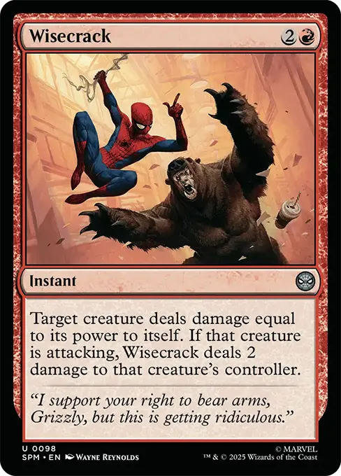 目標生物對本身造成等同於其力量的傷害。如果該生物正進行攻擊,則俏皮一笑對該生物的操控者造成2點傷害。