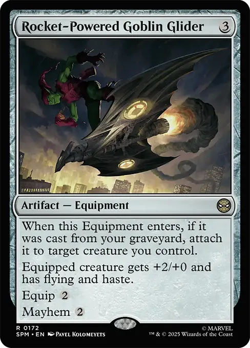 佩帶此武具的生物得+2/+0且具有飛行與敏捷異能。