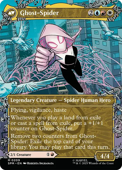 每當你從放逐區使用地或從放逐區施放咒語時,在幽靈蜘蛛上放置一個+1/+1指示物。