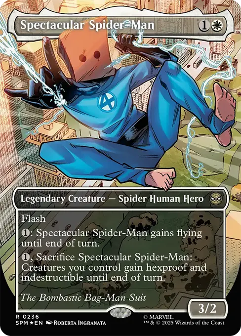 {1},犧牲神奇蜘蛛人:由你操控的生物獲得辟邪與不滅異能直到回合結束。